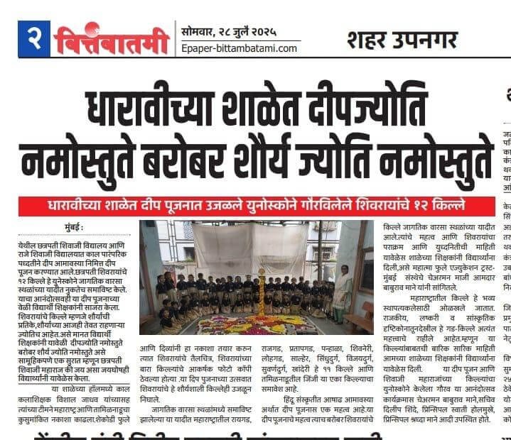 Mahatma Phule Education Trust was established in 1983 by Shree Baburao Mane, with a passion for education, keeping in mind the area of Dharavi which bares the fame of being the largest slum in Asia. Providing quality education to the underprivileged and backward class is a herculean task in this area. In 1996 Shree Baburao Mane started his first secondary school named Chhatrapati Shivaji Vidyalaya in four medium that are Marathi, Hindi, Urdu and English. After realizing that pre-primary & primary education are also a must in the ongoing process of education to be achieved, he then started Raje Shivaji Vidyalaya, pre- primary & Primary School in Marathi, Hindi, Urdu, English in 1997.